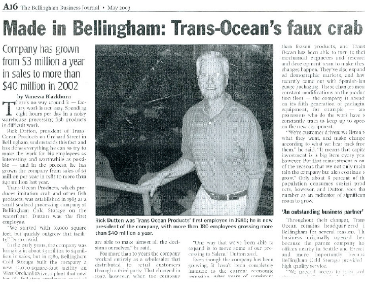 From humble beginnings to market leadership, it has been an exciting 40 years at Trans-Ocean Products. We look forward to continued success as we strive to make high quality seafood products while supporting our employees, our community and our environment.